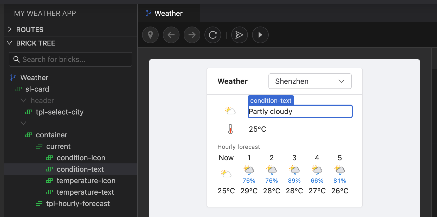 通过定义由多个构件(bricks)组成的 storyboards 来构建用户界面。构件就是 Web Components,像搭乐高一样将构件组合成页面和应用。